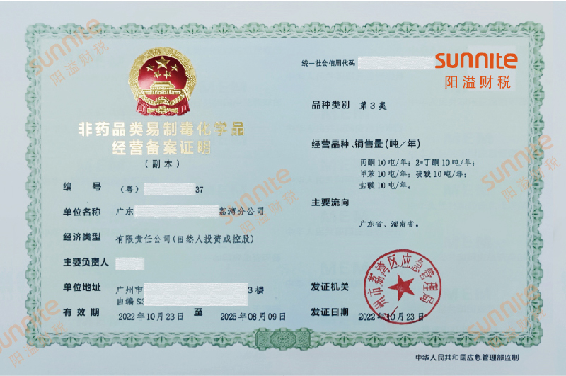 非藥品類易制毒化學(xué)品經(jīng)營許可證